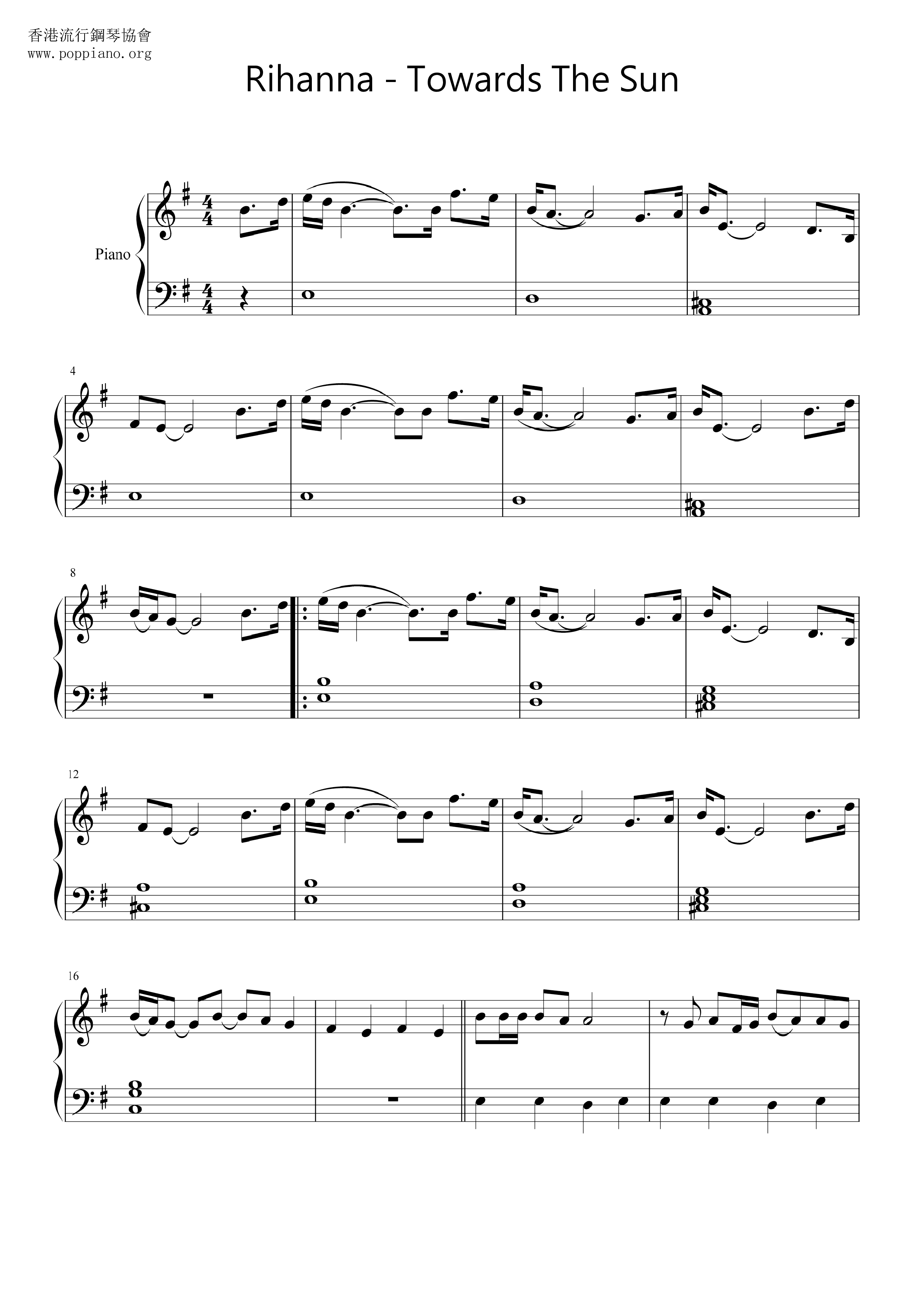 Rihanna "Towards the Sun" Sheet Music in E Minor ... Print and download Towards the Sun sheet music by Rihanna. Sheet music arranged for Piano/Vocal/Chords, and Singer Pro in E Minor (transposable). SKU: MN0148823