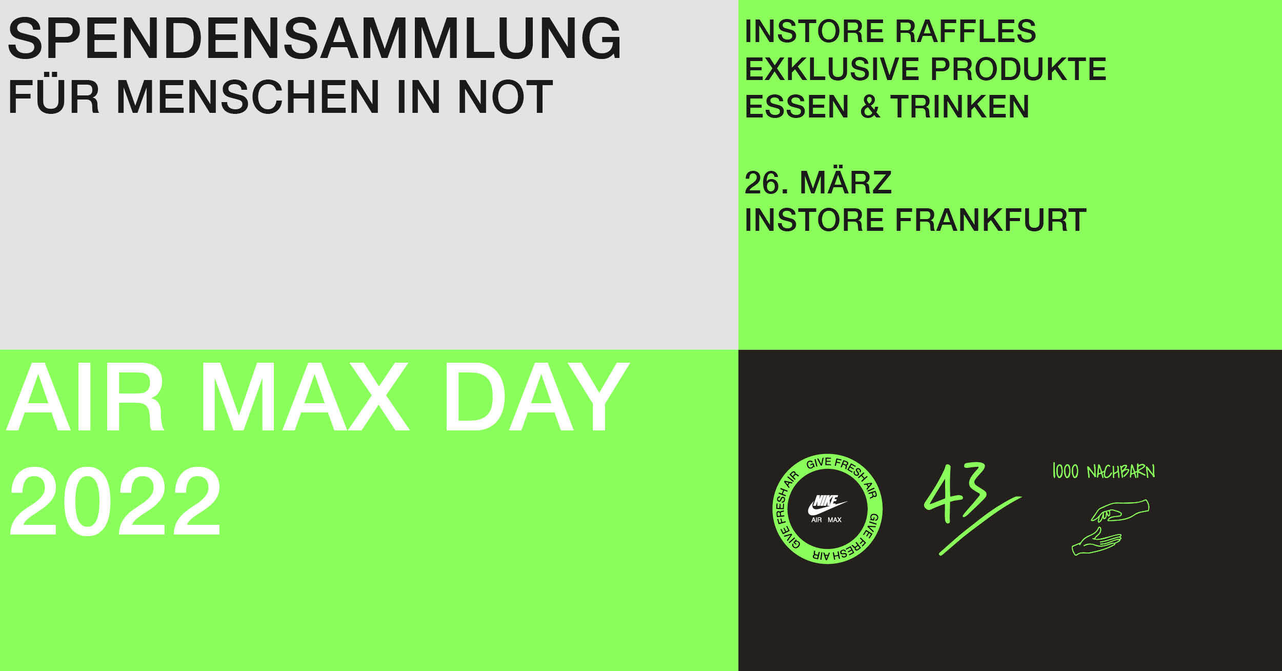 Give Fresh Air - nike.com Air Max Day 2022 Presented by Nike and partners, Give Fresh Air is a way to give "Air" in support of local communities. Let's come together around a shared passion to ignite change and uplift our community.